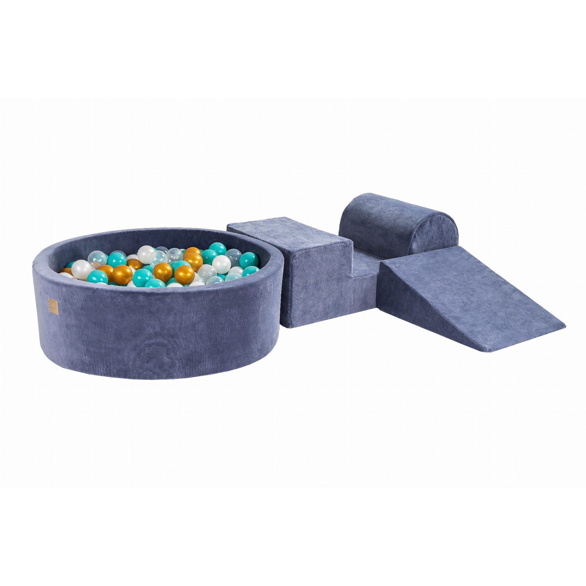 Foam 3 Elements Playset With Ball Pit 90x30cm With 200 Balls Certified, Velvet, Blue Gray: Turquoise/Gold/Transparent/White Pearl