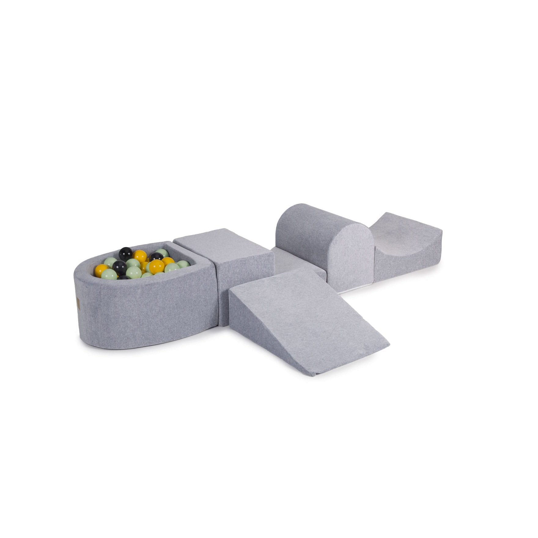 Foam Playset With Small Ball Pit Playground For Children With 100 Balls Certified, Velvet, Light Gray: Light Green/Yellow/Black