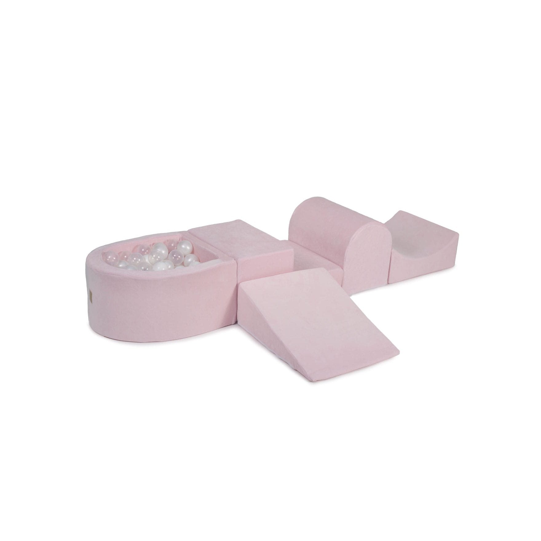 Foam Playset With Small Ball Pit Playground For Children With 100 Balls Certified, Velvet, Light Pink: White Pearl/White/Transparent