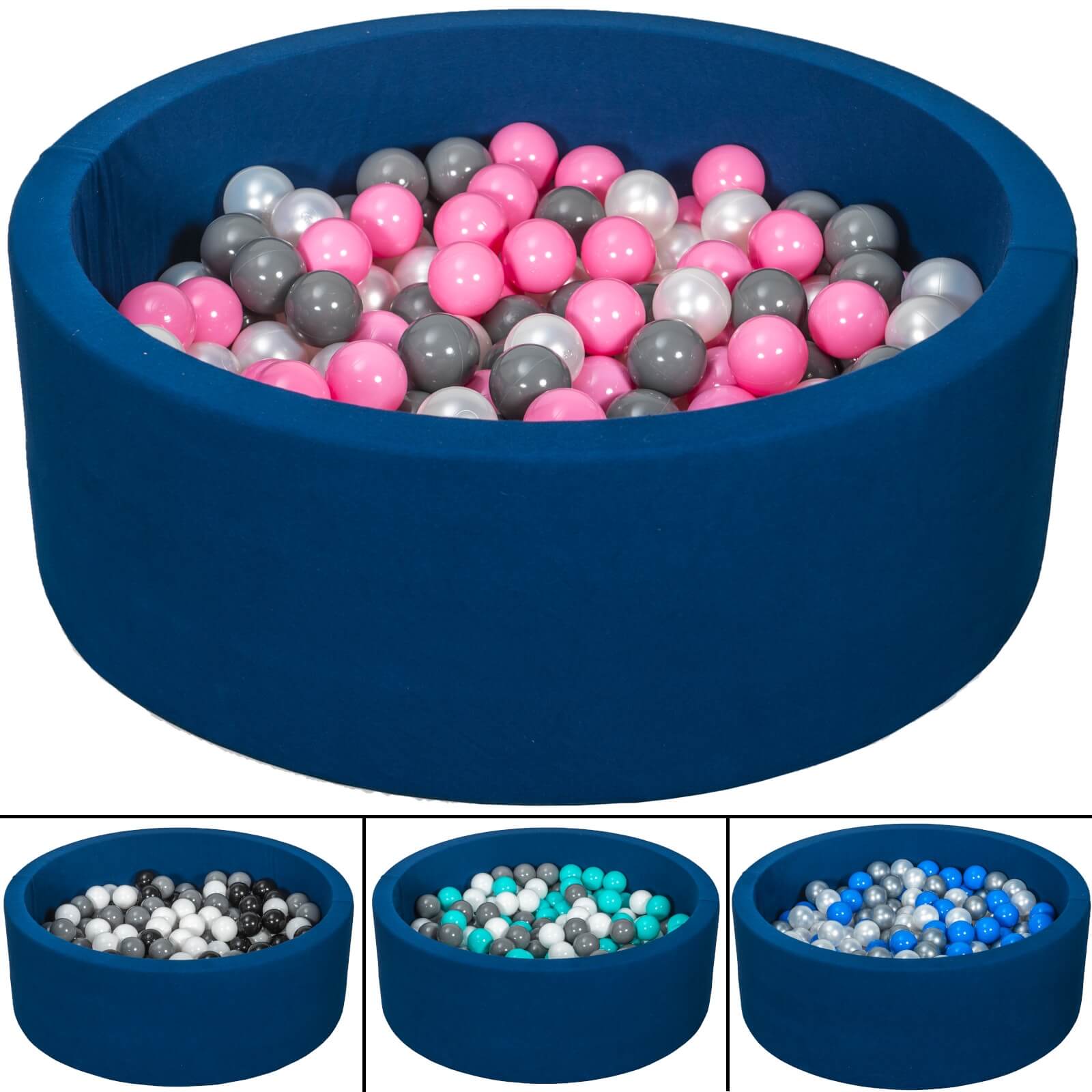 Velinda Soft Jersey Ball Pit with 300 Balls - Navy Blue - Baby & Kids Play Gift - 80cm
