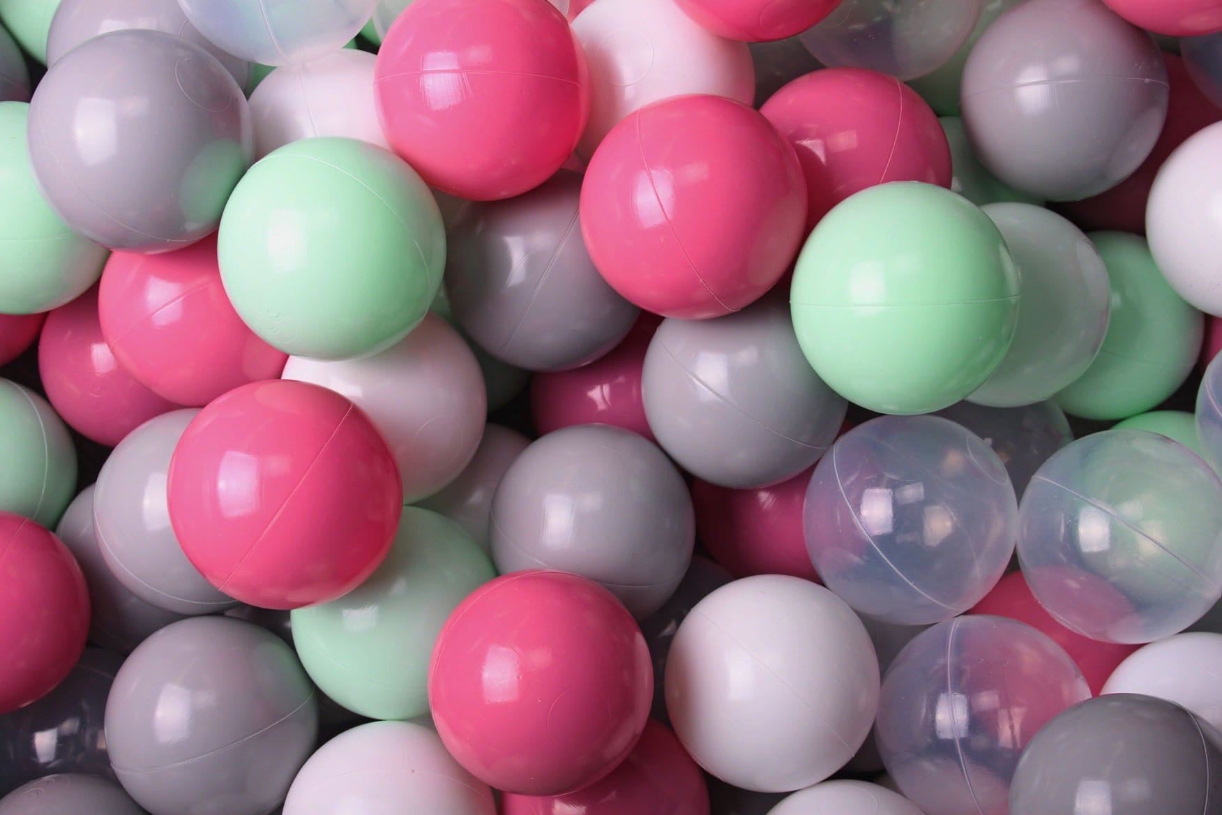 Soft Plastic Balls 7cm For The Ball Pit Certified Set 400pcs: Mint/Gray/Light Pink/Transparent/White